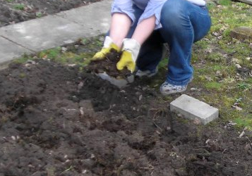 Vor dem Pflanzen kann man Kompost oberflächlich mit einem Grubber in die Erde einarbeiten. Das sollte ganz behutsam geschehen.
