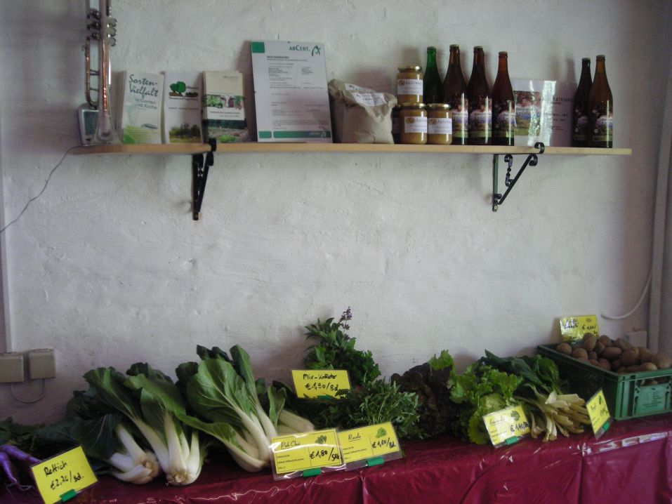 Anschliessend, als wir in dem kleinen Hofladen standen, dachte ich: “Klar, flächendeckend Menschen mit biovegan angebautem Gemüse zu ernähren, ist noch eine Zukunftsvision. Aber es ist doch wunderbar, wenn Leute einfach damit anfangen und dadurch zeigen, dass diese tierleidfreie Methode funktioniert!” Übrigens haben die MacherInnen vom allvepro im Allgäu (s.o.) 2014 bei der Gärtnerei Wildwuchs mitgearbeitet, um Erfahrungswerte für ihr Projekt zu sammeln.