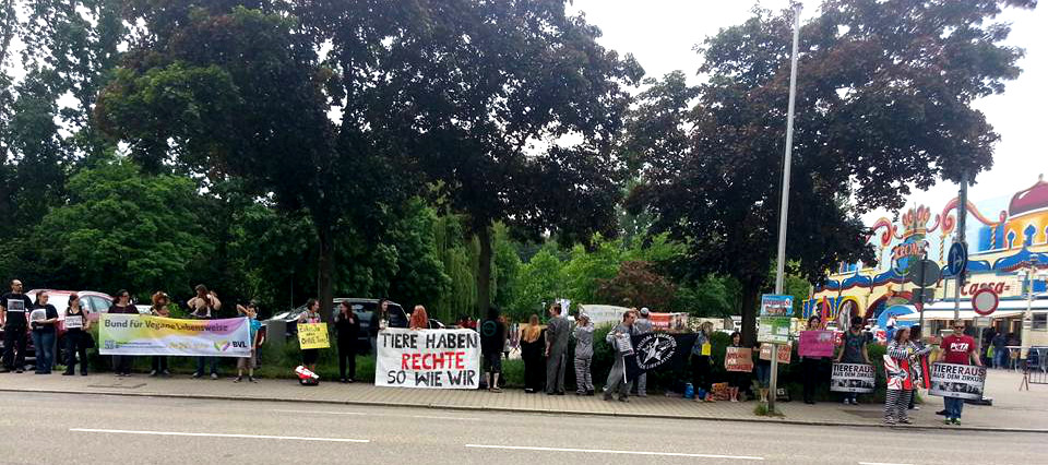 Wir werden Aktionen wie Infostände und Zirkusdemos veranstalten und Auswärtsbesuche zu anderen Demos und Tierrechtsaktionen machen, um andere Organisationen bei ihren Aktivitäten zu unterstützen.
