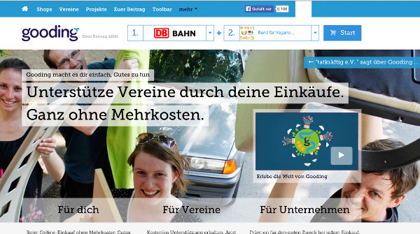 Wenn Sie gelegentlich oder häufiger via Internet einkaufen, können Sie uns unterstützen, indem Sie Ihren Shop über die Plattform von Gooding ansteuern. Dann erhalten wir eine Spende, die sich nach der Höhe Ihres Einkaufs richtet, ohne dass es Sie auch nur einen Cent kostet. Gooding finanziert sich über Werbung, daher müssen Ad-Blocker zumindest zeitweise pausiert werden, damit das System funktioniert.